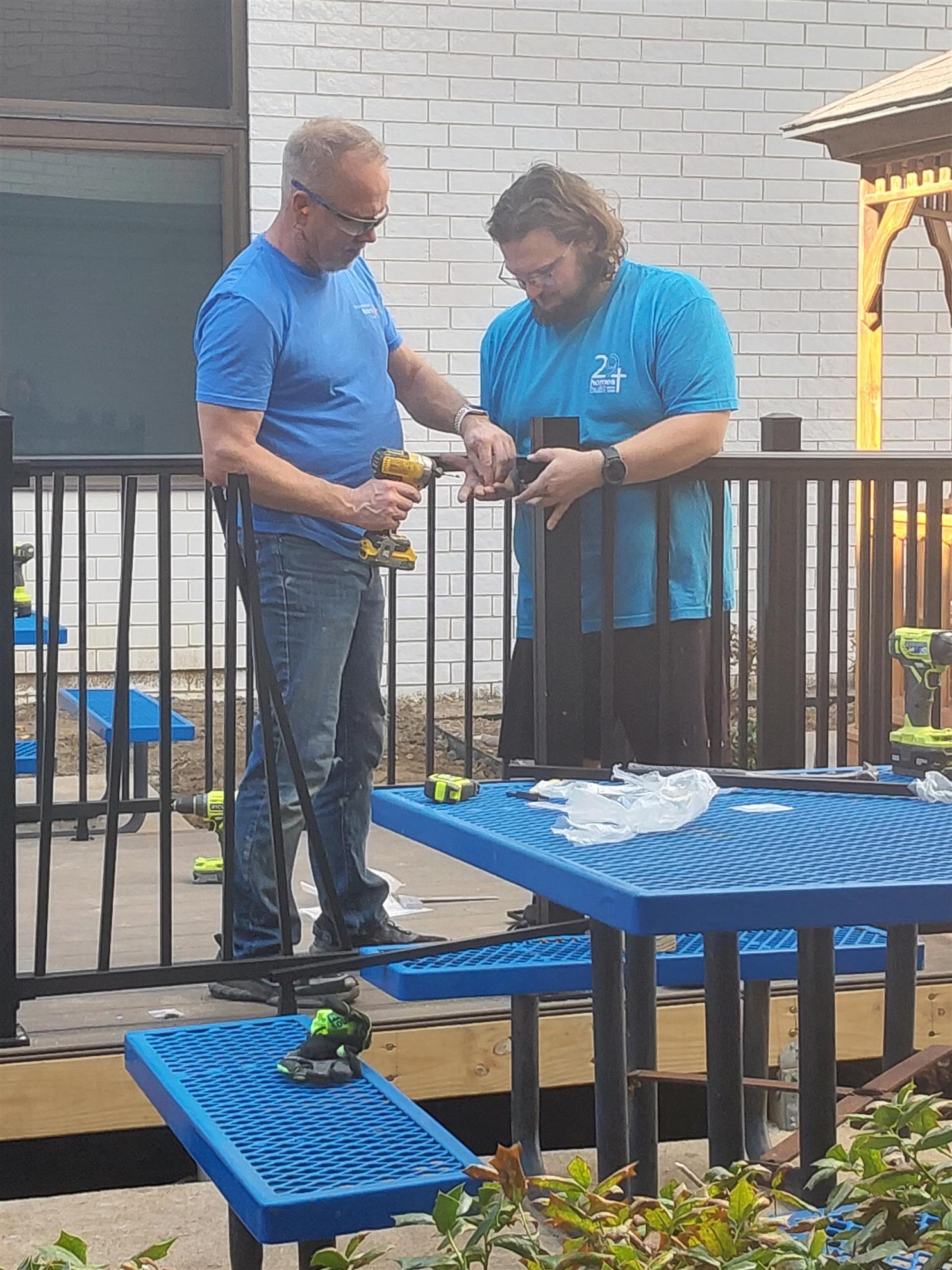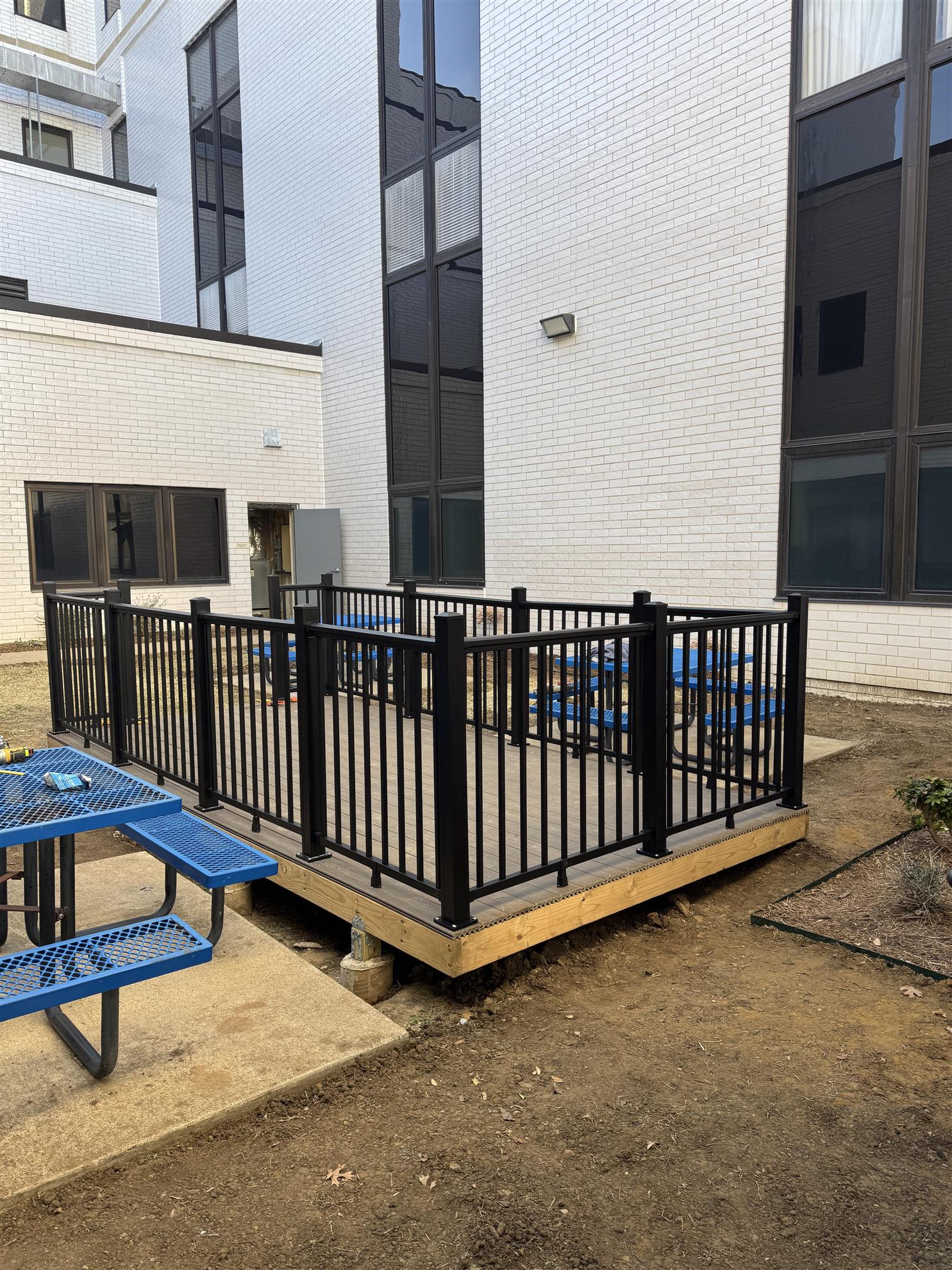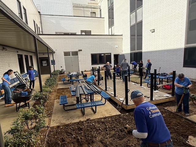 The Richardson East Rotary Club came together on Saturday to continue work on the Methodist Richardson Courtyard. The ground was prepped for new grass sod, beds prepared for new plantings and a railing was installed around the deck. So much hard work has gone into the planning, organizing and work days. Amazing work everyone, it looks incredible!